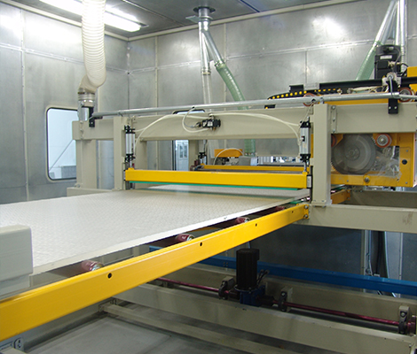 擁有國(guó)內(nèi)從歐洲全套引進(jìn)的柔性面材夾芯板連續(xù)生產(chǎn)線(xiàn)兩條。